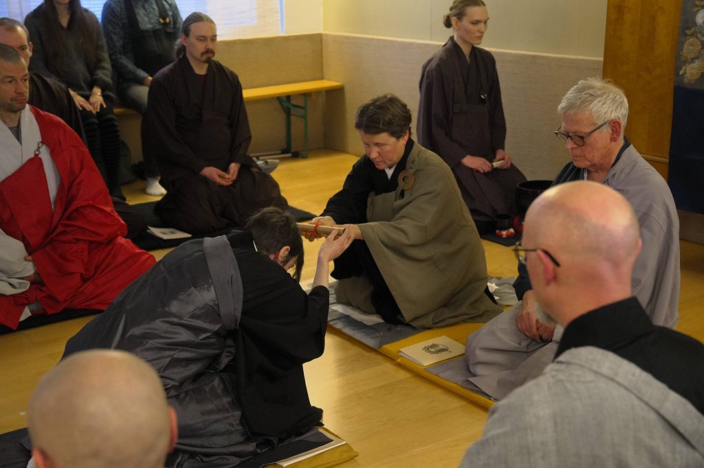 Toimittuaan viisi vuotta roshi Kanja Odlandin ja roshi Sante Poromaan valtuuttamana opettajana, 25.1.2026 he tekivät Tampere Zen Centerin Yhden pilarin temppelissä sensei Mitra Virtaperkosta Dharmanperijänsä ja valtuuttivat hänet toimimaan itsenäisenä ja täysivaltaisena perinteemme opettajana.